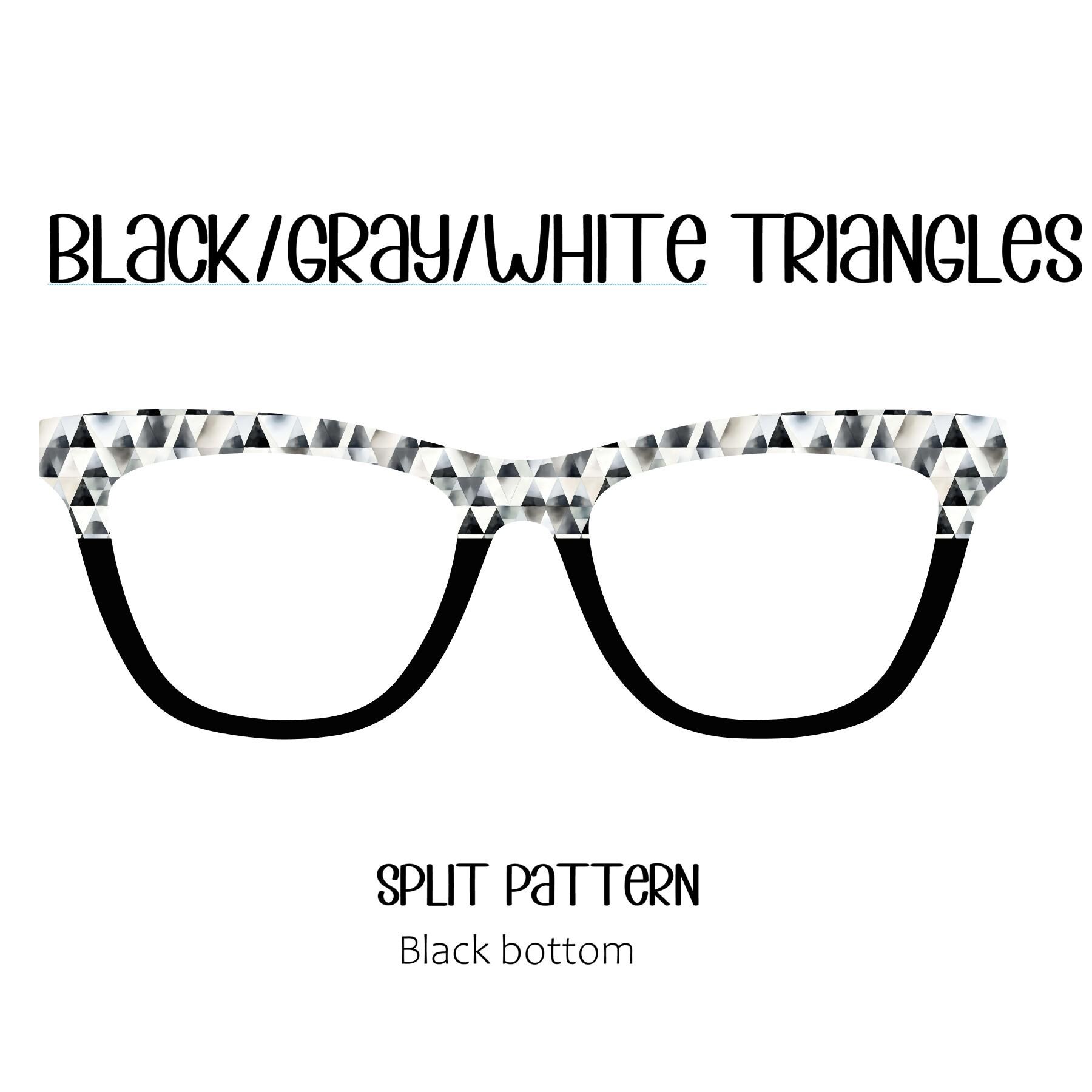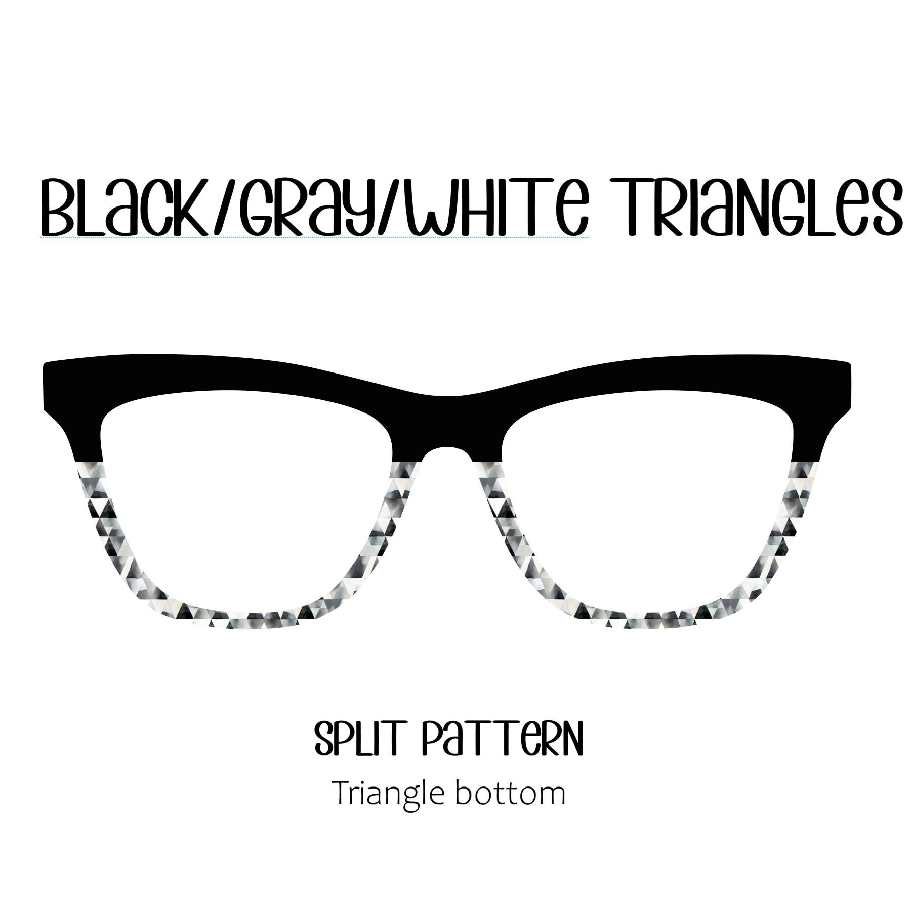 Add a touch of modern elegance to your eyewear with our black, gray, and white triangle eyeglass toppers, designed to offer a sleek, geometric flair.