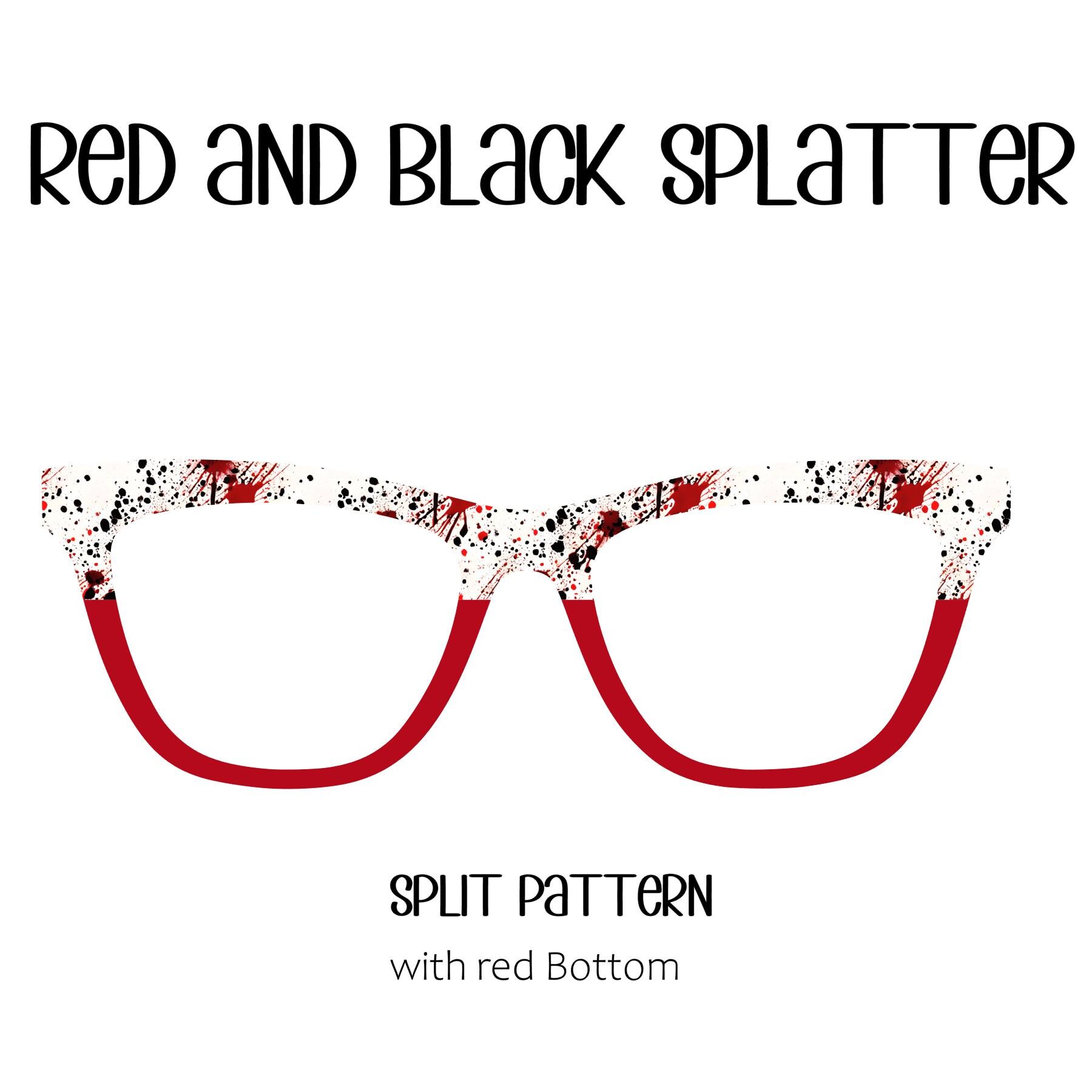 The red and black splatter eyeglass toppers make a bold, artistic statement. These toppers combine a striking contrast of deep red and sleek black in a splatter design that gives off an edgy, urban vibe. Perfect for those who want to add a bit of flair to their everyday eyewear.