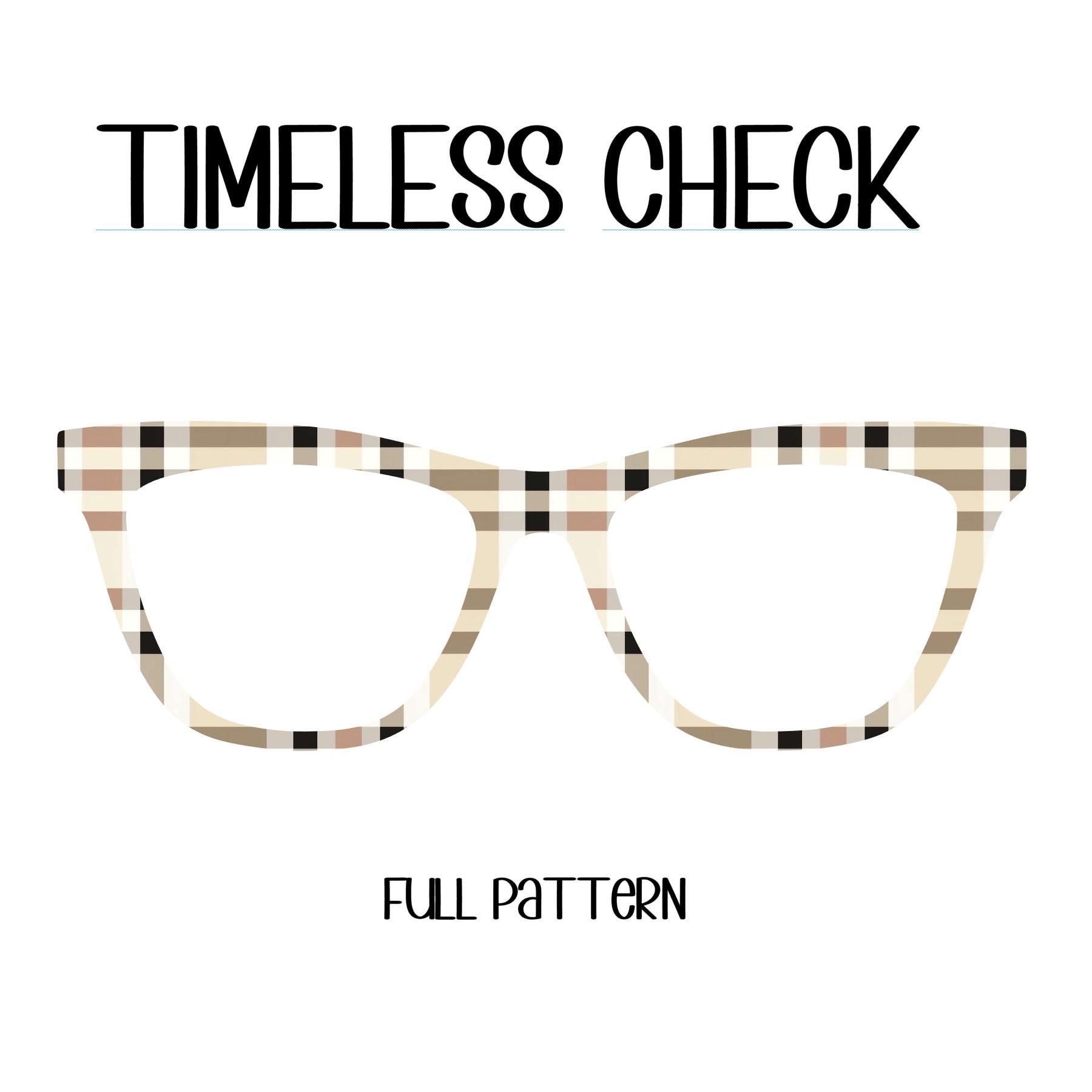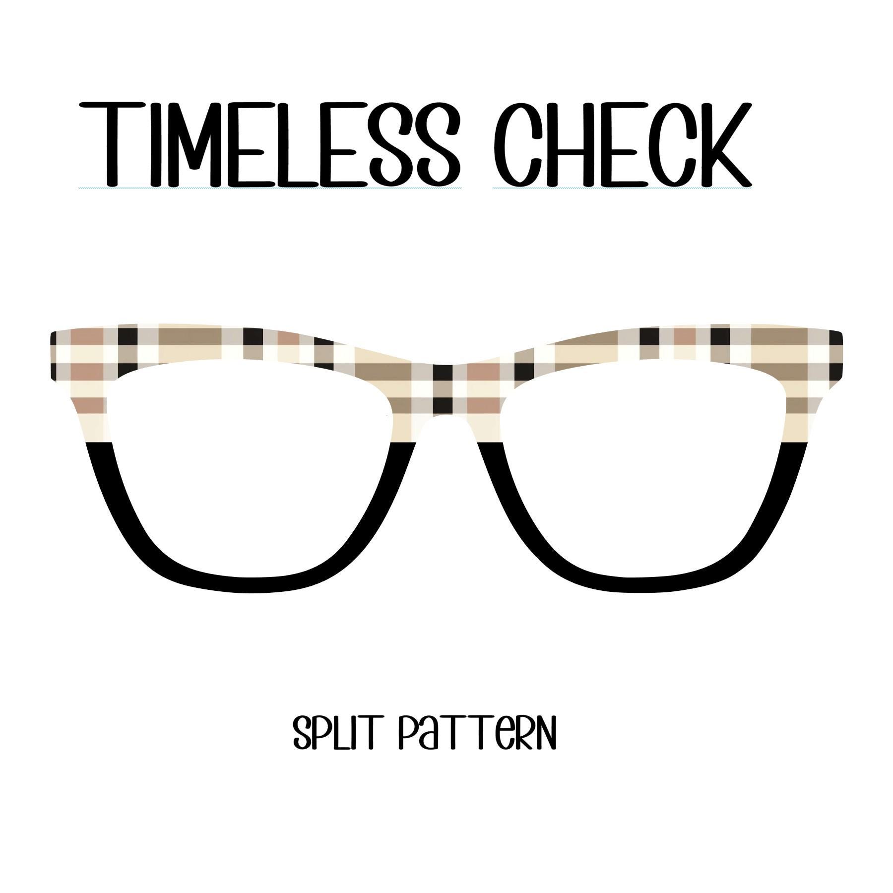 The Timeless Check eyeglass toppers bring a sophisticated blend of black and beige plaid, offering a classic and versatile look that effortlessly complements any style.